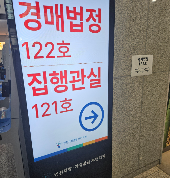현재 오전 11:55분 이 글을 쓰고 있는 곳은 부천지원 제122호 법정입니다. 개찰이 곧 시작되고, 저는 희망을 품고 입찰표를 넣었습니다.